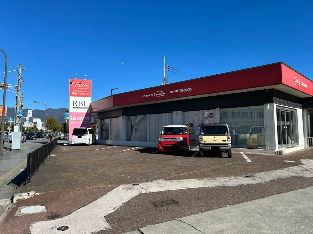 ▲「脱毛サロン la coco(ラココ)」の駐車場が利用可能だ。 経営母体が同じゆえの運用だが、区画によっては少々タイトなので、大型のSUVなどで向かう際は注意が必要だ。