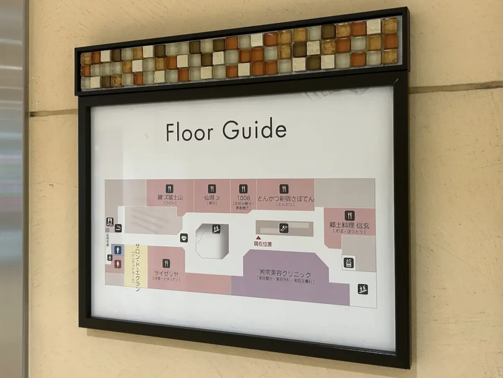 セレオに入店後、フロアガイドを確認し5階の湘南美容クリニックへ向かう。